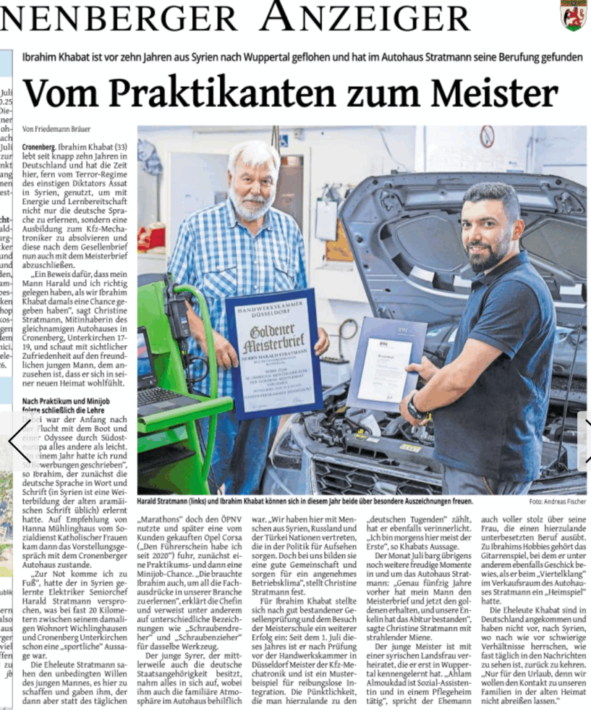 Der Bericht aus dem Cronenberger Anzeiger über unseren Meister Ibrahim Khabat: